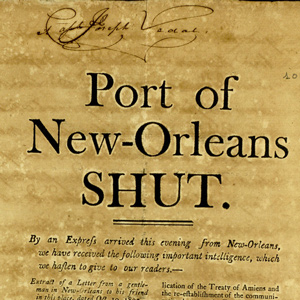 From Washington City, President Thomas Jefferson writes a letter to James Monroe asking him to become Envoy Extraordinary and Minister Plenipotentiary with the authority to negotiate a solution to the Spanish closure of the port of New Orleans to American commercial traffic.