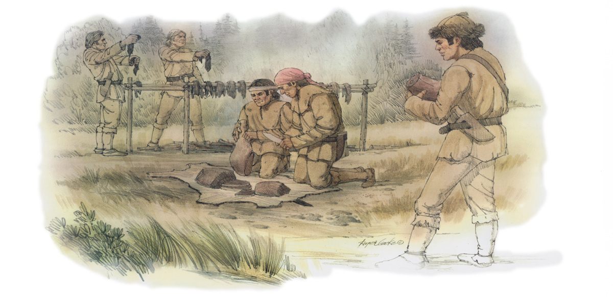 those who remained in camp were employed in collecting wood making a scaffoald and cuting up the meat in order to dry it.