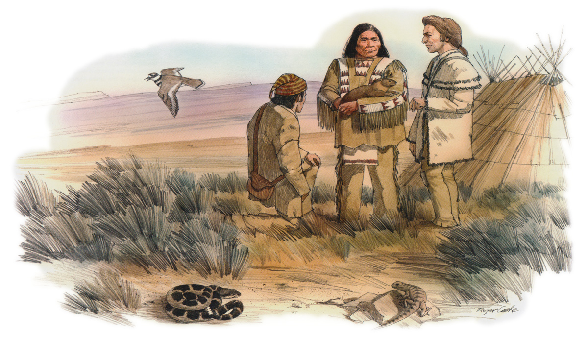 The Curloos are abundant in those plains & are now laying their eggs. Saw the Kildee [killdeer] the brown Lizzard, and a moonax [marmot] which the nativs had petted.