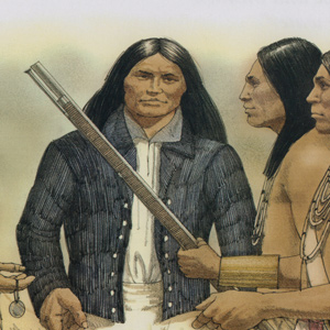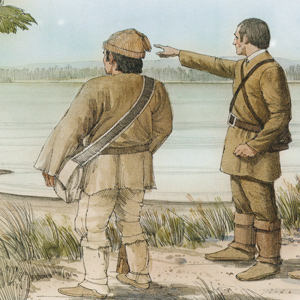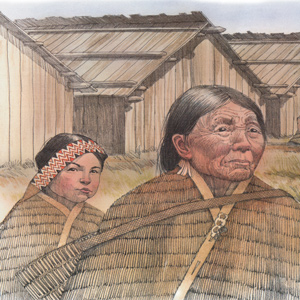 Moving down the Columbia River, a Chinookan villager introduces the captains to the wapato bulb—a staple Native food. At camp near present Ridgefield, Washington, they are kept awake by noisy waterfowl.
