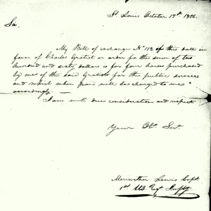 In preparation for their return to Washington City, Meriwether Lewis purchases four horses from Charles Gratiot and goods or services for “public purposes” from William Christy and two other St. Louis merchants.