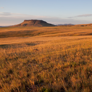 In 1805, Lewis viewed the Rocky Mountain Front from a vantage point similar to that in the above photo, but he did not appear to recognize the buttes as Fidler’s Battle Hills. From left to right is Crown Butte, Shaw Butte, and Square Butte. Square Butte—Lewis’s “Fort Mountain”—is nearly 1,000 feet above the surrounding prairie, and is about 1,100 acres on top.