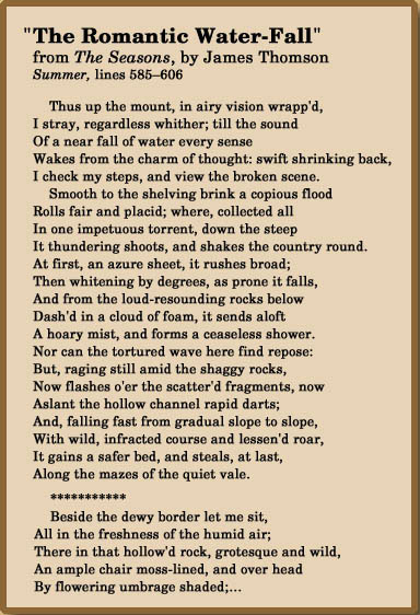 Finally, it was Thomson’s style of writing about nature that readers like Lewis admired. With the eye of a painter, Thomson studied the forms, colors, motions, temperatures and textures of rural nature, and recorded them faithfully and objectively. Nearly every phrase captures a detail in vivid, crystalline clarity.
